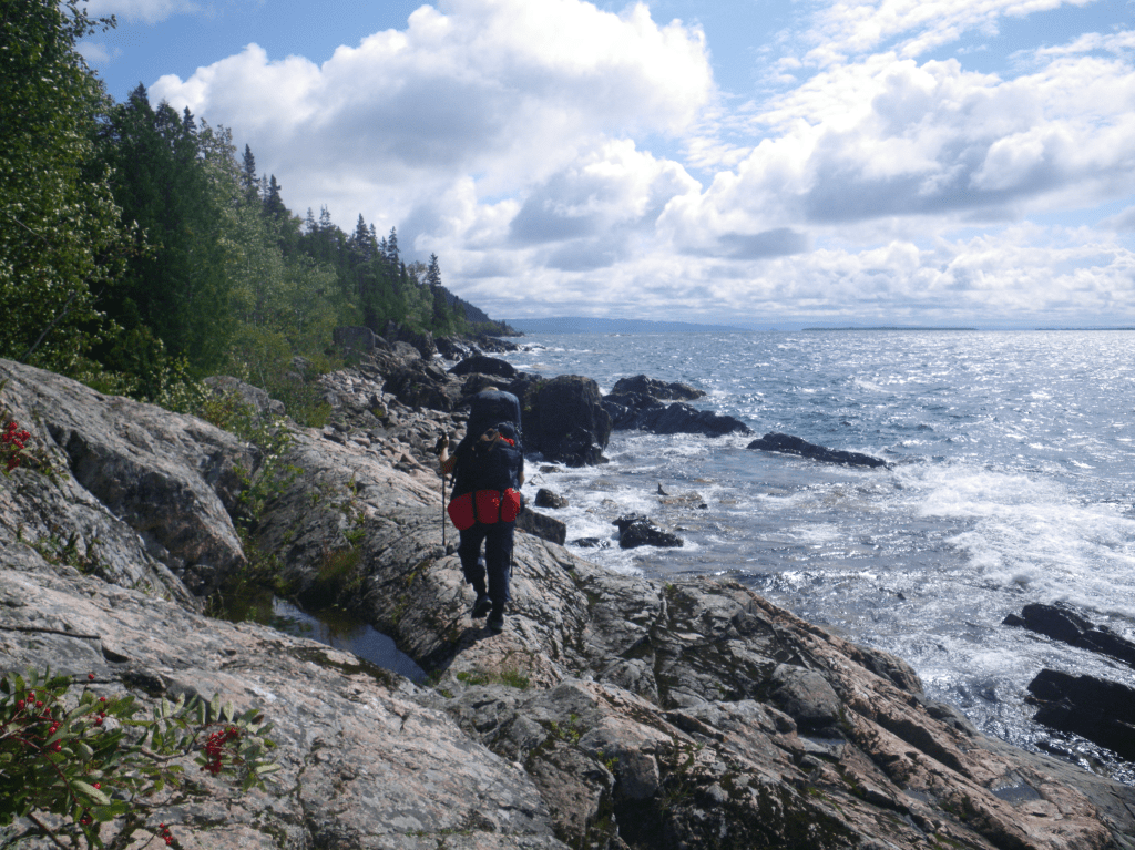 On the day we were leaving for Lake Superior we didn’t set an alarm. No surprise we woke up an hour late from when we wanted to leave. We quickly gathered our things, threw the packs in the car and headed for hwy 17 the great Northern Road. It was a beautiful clear day with warm wind in the car window. We only stopped twice-on the drive to the park. Once for breakfast and once for gas and a washroom break. We knew we were going to be late for the shuttle we booked. The time we tried to make up was not happening so we called the shuttle service and they agreed to wait an extra 30 mins they were amazing.